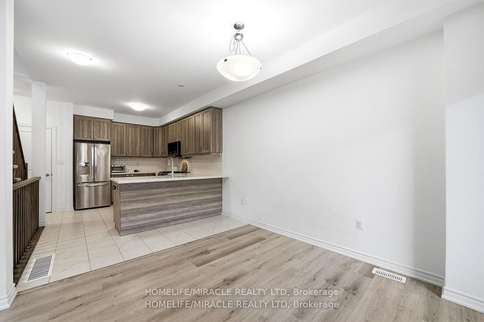 Welcome to this upgraded Freehold Townhouse with 3-bedroom and 3 bathroom with 1,601 sq. ft. of beautifully designed living space just over 2 years old. This home is the perfect blend of modern comfort and family-friendly convenience. Step inside to discover a bright, open-concept layout featuring thousands spent builder upgrades including upgraded cabinetry, quartz countertops in kitchen and washrooms and for added comfort and privacy. Family room with fireplace and marble on the family room wall and with upgraded railing. The extended kitchen is a true highlight, complete with a built-in pantry, and branded appliances,offering both style and practicality. The kitchen flows seamlessly into the dining and Family areas, perfect for entertaining or relaxing with family. Upstairs, you'll find three spacious bedrooms, including the primary suite with a luxury ensuite bath. Located in one of Brantford most sought-after communities, this home is surrounded by excellent schools, nearby recreation center, parks, Plaza and scenic nature trails. With new construction projects transforming the area, this is an incredible opportunity to invest in a fast-growing neighborhood. Simply move in and enjoy, this turnkey home truly has it all!